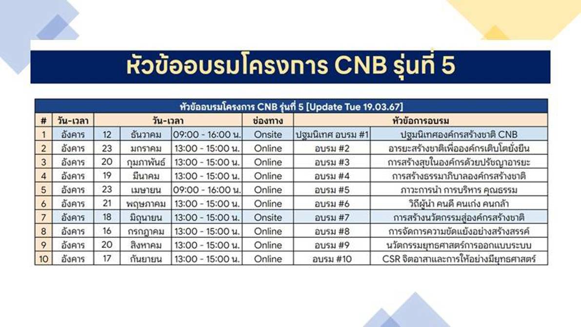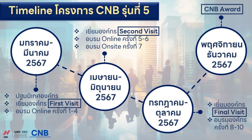 องค์กรสามารถติดต่อสอบถามรายละเอียดโครงการ CNB รุ่นปัจจุบัน ได้ที่คุณ ……